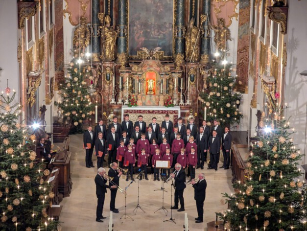 Das dieses Jahr um eine Posaune und eine Trompete erweiterte Biberacher Bläserquartett gab am zweiten Weihnachtsfeiertag in der vollbesetzten Stadtpfarrkirche St. Martin sein traditionelles Weihnachtskonzert. Mitwirkende waren in diesem Jahr wieder die St.-Martins-Chorknaben unter der Leitung von Johannes Striegel. Den musikalischen Auftakt machte das erweiterte Biberacher Bläserquartett (Klaus Geyer, Helmut Reinhardt, Werner Sauter Trompeten und Wolfgang Fritzenschaft, Josef Schmid, Franz Schlegel Posaunen) mit der bekannten Biberacher Pastorale und einem zarten für drei Posaunen arrangierten Wiegenlied „Schlaf, schlaf holdseliges Jesulein“. Zum 200. Geburtstag des oberösterreichischen Romantikers Anton Bruckner erklangen drei kleine Stücke aus der Feder des Meisters. Mit prächtigen Bläserklängen erfüllte ein lyrisches Andante und ein ausdruckstarkes Gebet von Bruckner den weiten Kirchenraum. Dazwischen intonierte der Chor Bruckners berühmte Motette „Locus iste“ mit wunderbar feinem Chorklang. Die Weihnachtsfreude war in der Motette „Halleluja“ von Andreas Hammerschmit für alle hörbar. Die St.-Martins-Chorknaben wurden dabei von Frank Bossler an der Chororgel begleitet. In…